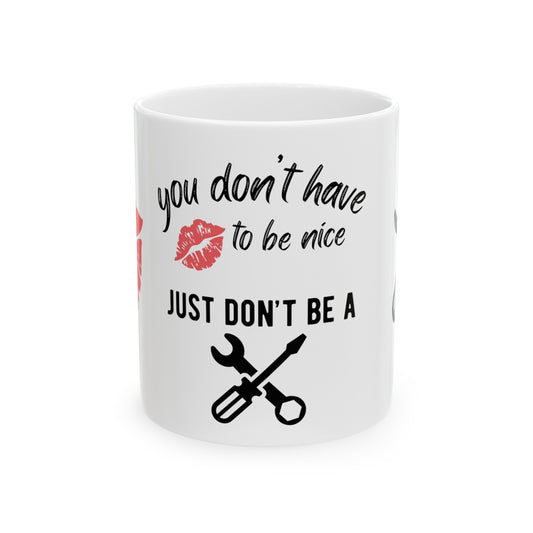 You Don't Have to Be Nice - Just Don't Be a Tool. White Ceramic Coffee Mug, 11oz
