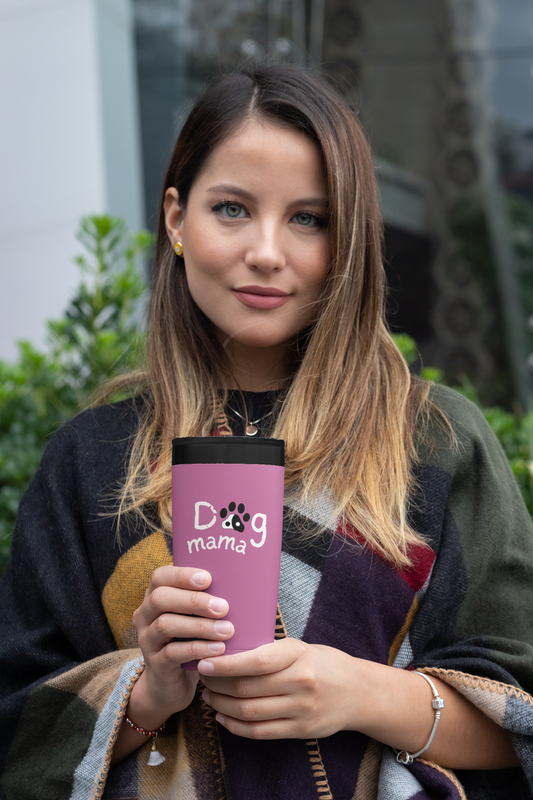 15 oz Dog Mama - Stainless Steel Coffee Travel Mug. Dog mom gift idea for dog lover.