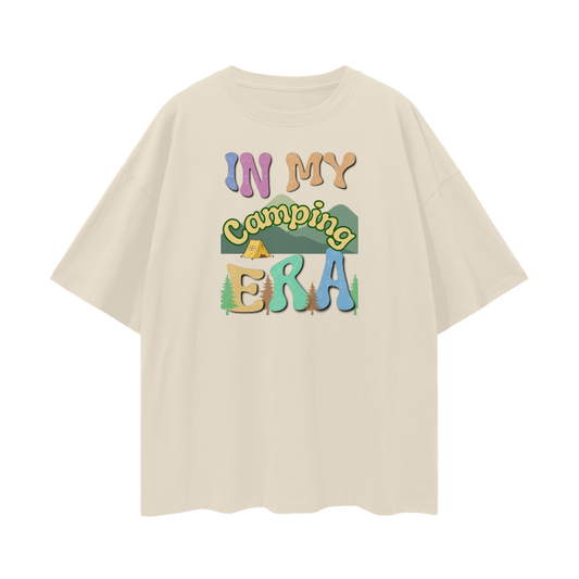 In My Camping Era Oversize Deep Drop Shoulder Tee. Perfect for those who find their peace by the campfire. Oversize Tee - 190 GSM