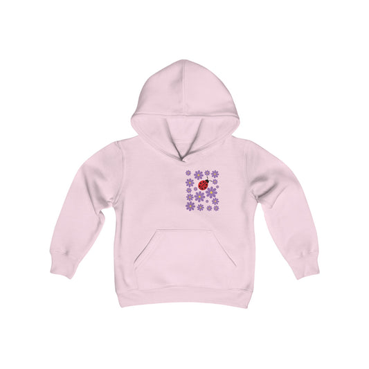 Introducing the Youth Ladybug and Flowers Hoodie. Youth Heavy Blend Hooded Sweatshirt
